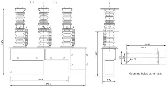 Taikant bendrą stulpinio tipo porceliano izoliatoriaus struktūrą, viršutiniame izoliatoriuje yra vakuuminis pertraukiklis, o apatinėje dalyje yra porcelianinis izoliatorius. Produktas tinkamas dažnoms operacijoms ir pasižymi tokiais pranašumais kaip patikimas sandarinimas, senėjimą stabdančios savybės, atsparumas aukštam slėgiui, nedegumas, nesprogiamumas, ilgas tarnavimo laikas, lengvas montavimas ir priežiūra.